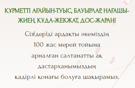 Құрметті ағайын-туыс, бауырлар, нағашы-жиен, құда-жекжат, дос-жаран!